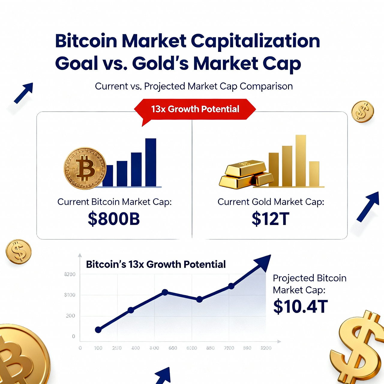2025년 현재 비트 코인의 시가총액은 약 2.2조 달러로, 금 시가총액인 약 28조 달러 대비 약 13분의 1 수준입니다. 전문가들은 비트코인이 장기적인 목표로 금 시가총액과 경쟁할 것으로 보고 있습니다.